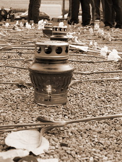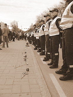 Взрослый народ ведет себя взросло и достойно. Поэтому дневной митинг обошелся без эксцессов. Люди втыкали гвоздики в забор, раскладывали их по асфальту - мило и оригинально. Выходит некий крик о помощи. Отчаяние без границ. Но цветы полиция зачем-то выдергивала. К чему? Для чего? Мешают, что ли? Мгновенно подбегали ОРТ и РТР, и снимали плачущих женщин, рассказывающих, как полиция выдергивает гвоздики. Отлично! Выйдет замечательный репортаж!..