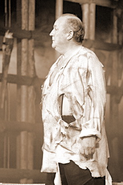 | А играют, в конце концов, за такую сладкую, пьянящую, может быть, раз в жизни (и, как правило, под её конец) дающуюся возможность сказать со сцены правду этим, которые сейчас жрут и пьют, которые в любую минуту готовы заржать или вытолкать взашей. За возможность сказать такую правду, которую не просвистишь громким шепотом, наедине: «Вы и убили-с». Её можно сказать только во весь голос, в эти невидимые миру лица. Народный артист России Юрий Новохожин в роли Чарльза. Фото: Александр Сидоренко |