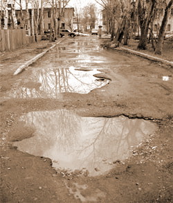 Подвалы в домах затоплены, вонь, сырость. Провели ремонты дорог, но когда в ПМК (ул. Мелиораторов) сразу после дождя образовались ямы, их заделали, но снова ямы после дождя так и стоят.