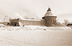 На минувшей неделе в Покровской башне Псковской крепости [ 1 ], шатер которой сгорел в 1995 году, приступили к работе мастера-плотники и реставраторы. Началось возведение строительных лесов для сооружения реставрируемого шатра. Работами руководит сотрудник петербургской строительной компании «ПГС II», строитель и плотник Егор Александрович Сёмочкин, член попечительского совета Благотворительного фонда «Общество друзей Пушкиногорья», сын легендарного ученого, архитектора, строителя, писателя и также плотника, друга Саввы Васильевича Ямщикова, Александра Александровича Сёмочкина, спасителя и директора музея-усадьбы Владимира Набокова в Рождествено. Труды на Покровской башне должны быть завершены к октябрю. Задачей реставраторов является воссоздание уникального шатра работы Всеволода Смирнова, возведенного к 1962 году. История работ почти сорокалетней давности мало известна псковичам. Редакция «Псковской губернии» попросила искусствоведа, главного специалиста Псковского филиала ФГУП «Спецпроектреставрация» Ирину ГОЛУБЕВУ, автора специального исторического исследования, проведенного при разработке проекта реставрации шатра, восполнить для читателей газеты этот пробел.