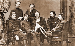 | Групповой фотоснимок участников литературного объединения «Среда», 1902 г. Стоят (слева направо): Леонид Андреев, Евгений Чириков. Сидят: Максим Горький, Иван Бунин, Федор Шаляпин, Скиталец (С. Г. Петров), Николай Телешов. |